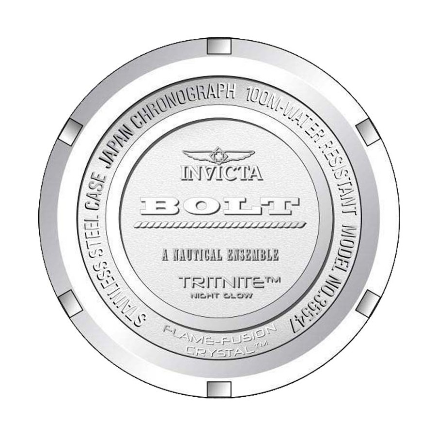 Modelová rada Bolt je špecifická nylónovým lankom, ktoré je použité namiesto lunety. Celá konštrukcia hodiniek Invicta 26540 je z nerezovej ocele, ktorú perfektne dopĺňa strieborné prevedenie nylónového lanka a netradičné prevedenie ciferníka. Tento model má dva chronografy a indikátor dňa v týždni. Chronograf na meranie 60 sekundových, 30 minutových...
