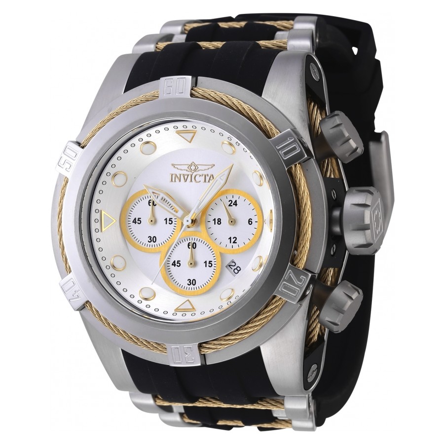 Modelová rada Bolt je špecifická nylónovým lankom, ktoré je použité namiesto lunety. Model Invicta 26539 má krásne strieborné prevedenie, ktoré perfektne dopĺňa zlaté prevedenie nylónového lanka a netradičné prevedenie ciferníka. Tento model má dva chronografy a indikátor dňa v týždni. Chronograf na meranie 60 sekundových, 30 minutových intervalov...