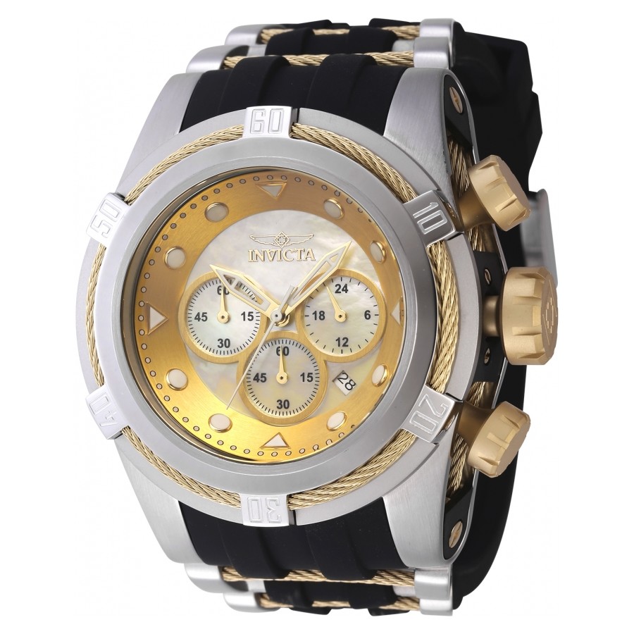 Model Invicta 25518 sa môže pýšiť elegantným zlato - strieborným spracovaním a neprehliadnutelným a detailne spracovaným ciferníkom ktorý, dopĺňa čierne nylónové lanko. Hodinky majú dva chronografy a indikátor duálneho času. Ciferník chráni flame fusion krištál, ktoré je mnohokrát odolnejšie ako klasické minerálne skličko. Japonský strojček Hattori VD54...