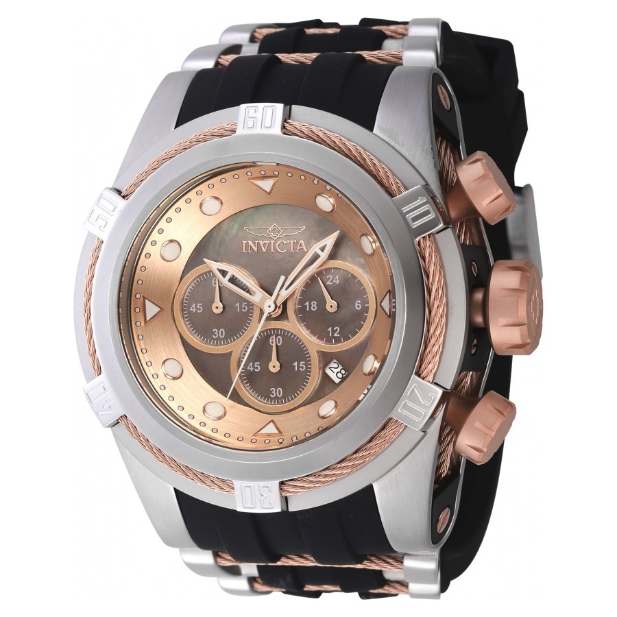 Modelová rada Bolt je špecifická nylónovým lankom, ktoré je použité namiesto lunety. Celá konštrukcia hodiniek Invicta 25868 je z dvojfarebnej 18K pozlátenej nerezovej ocele, ktorú perfektne dopĺňa zlaté prevedenie lunety a strieborného nylónového lanka. Tento model má dva chronografy a indikátor dňa v týždni. Chronograf na meranie 60 sekundových a 30...