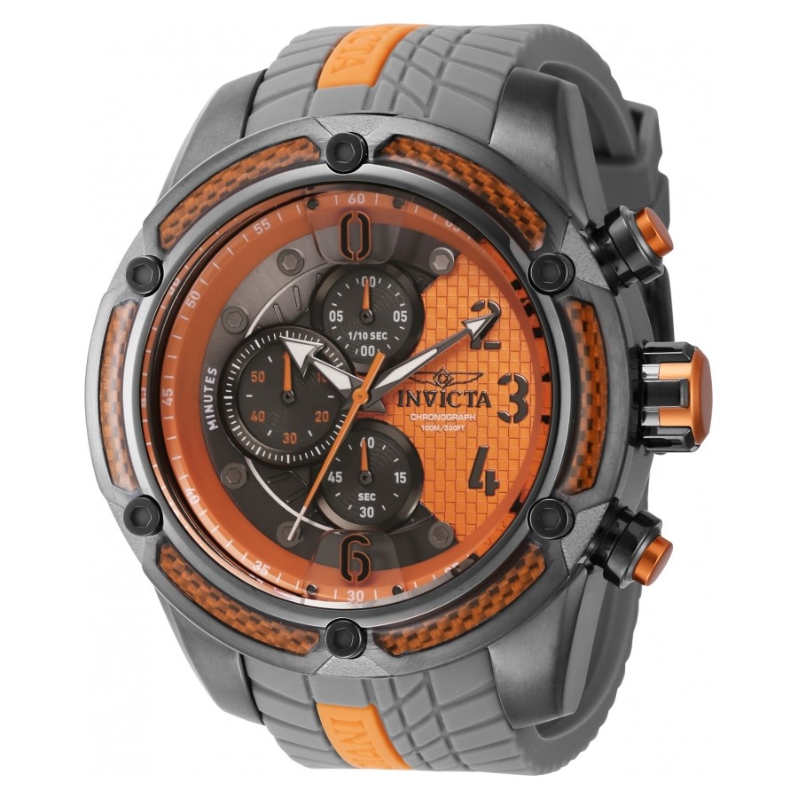 Práve sa pozeráte na športový model s označením Invicta 43899. Hodinky majú krásne sivo - oranžové prevedenie. O maximálne pohodlie sa postará kvalitne spracovaný remienok zo silikónu. O vašu dochvílnosť sa postará japonský strojček Hattori s kalibrom VD55.