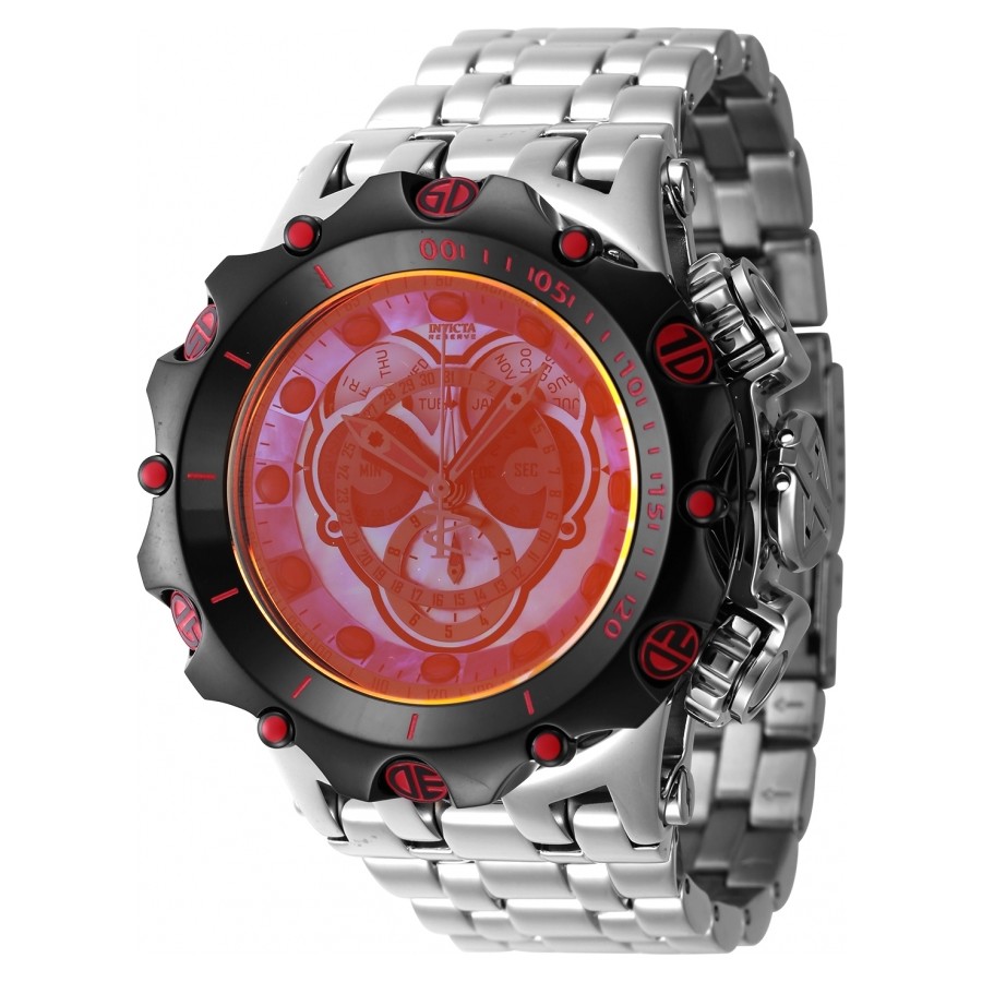 Model Invicta 45611 patrí k najkomplexnejším hodinkám z kolekcie Venom. Na ciferníku nájdete tri chronografy, indikátor duálneho času, indikátor dňa v týždni a dokonca aj indikátor mesiaca v roku. Vo vnútri sa nachádza kvalitný švajčiarsky strojček na ktorý ponúkame predĺženú 3 ročnú záruku. Hodinky sú vhodné aj na hĺbkové potápanie.