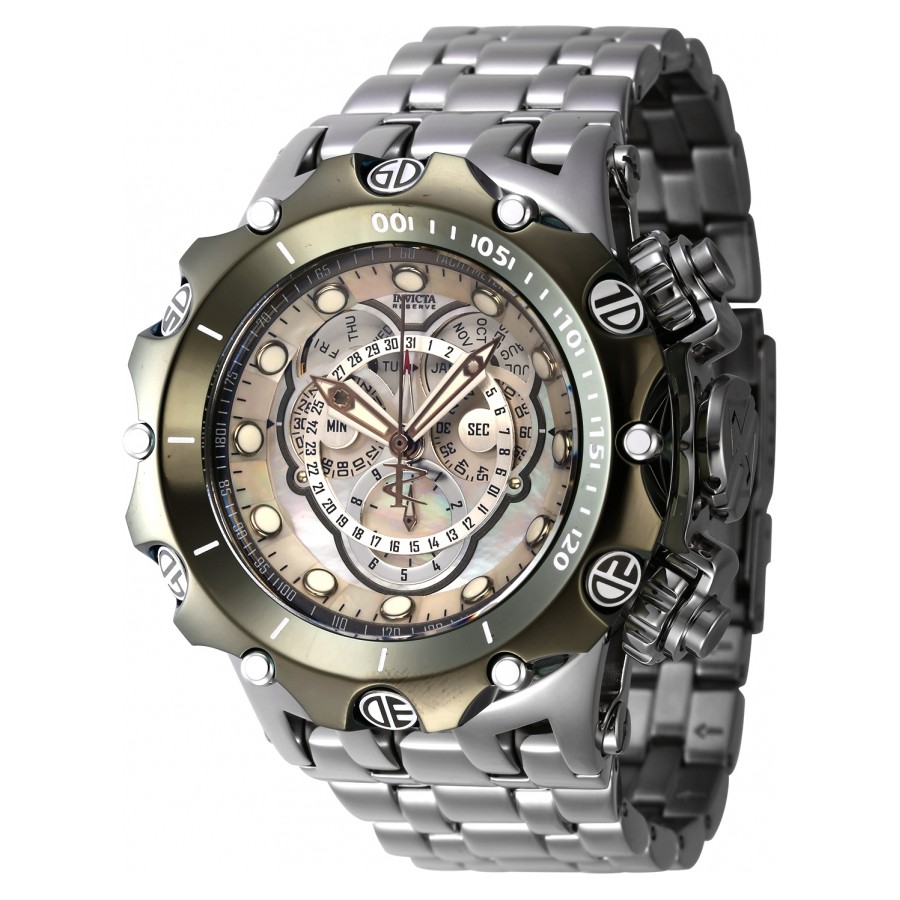 Model Invicta 45612 patrí k najkomplexnejším hodinkám z kolekcie Venom. Na ciferníku nájdete tri chronografy, indikátor duálneho času, indikátor dňa v týždni a dokonca aj indikátor mesiaca v roku. Vo vnútri sa nachádza kvalitný švajčiarsky strojček na ktorý ponúkame predĺženú 3 ročnú záruku. Hodinky sú vhodné aj na hĺbkové potápanie.
